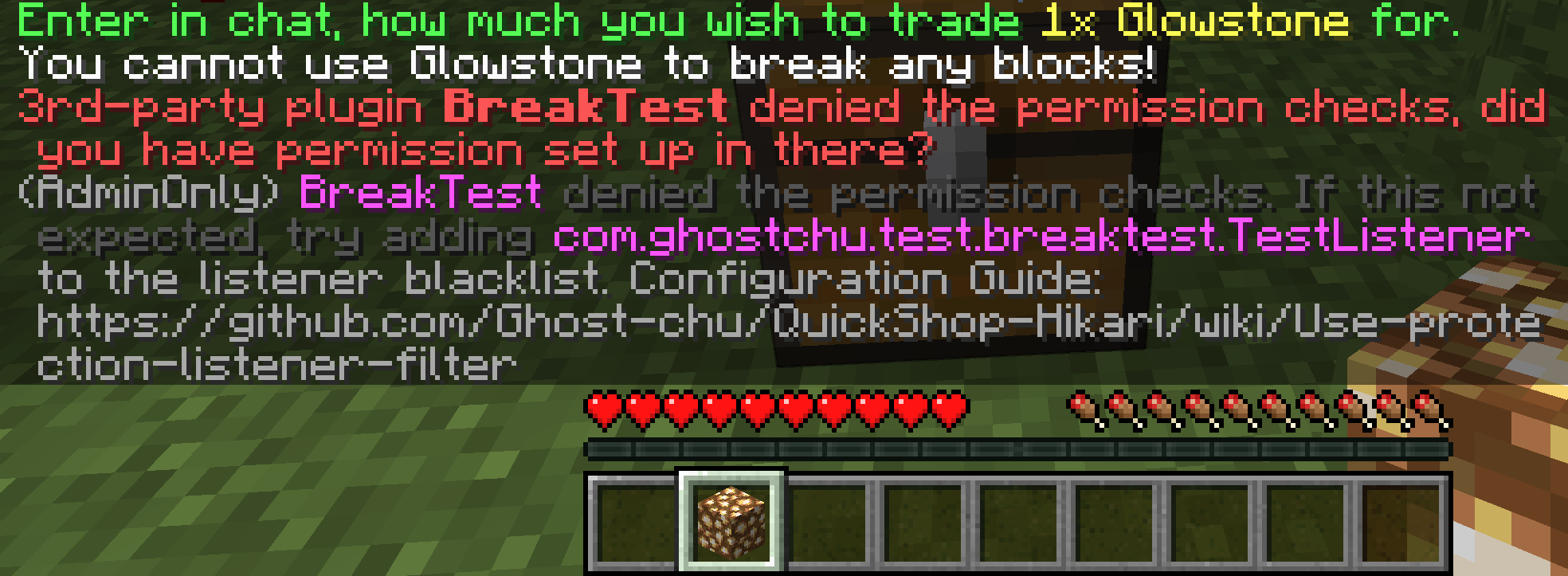 В: Почему плагин не реагирует при создании магазина? О: Возможно, плагины защиты блокируют создание. Отключите shop.protection-checking в конфигурации.