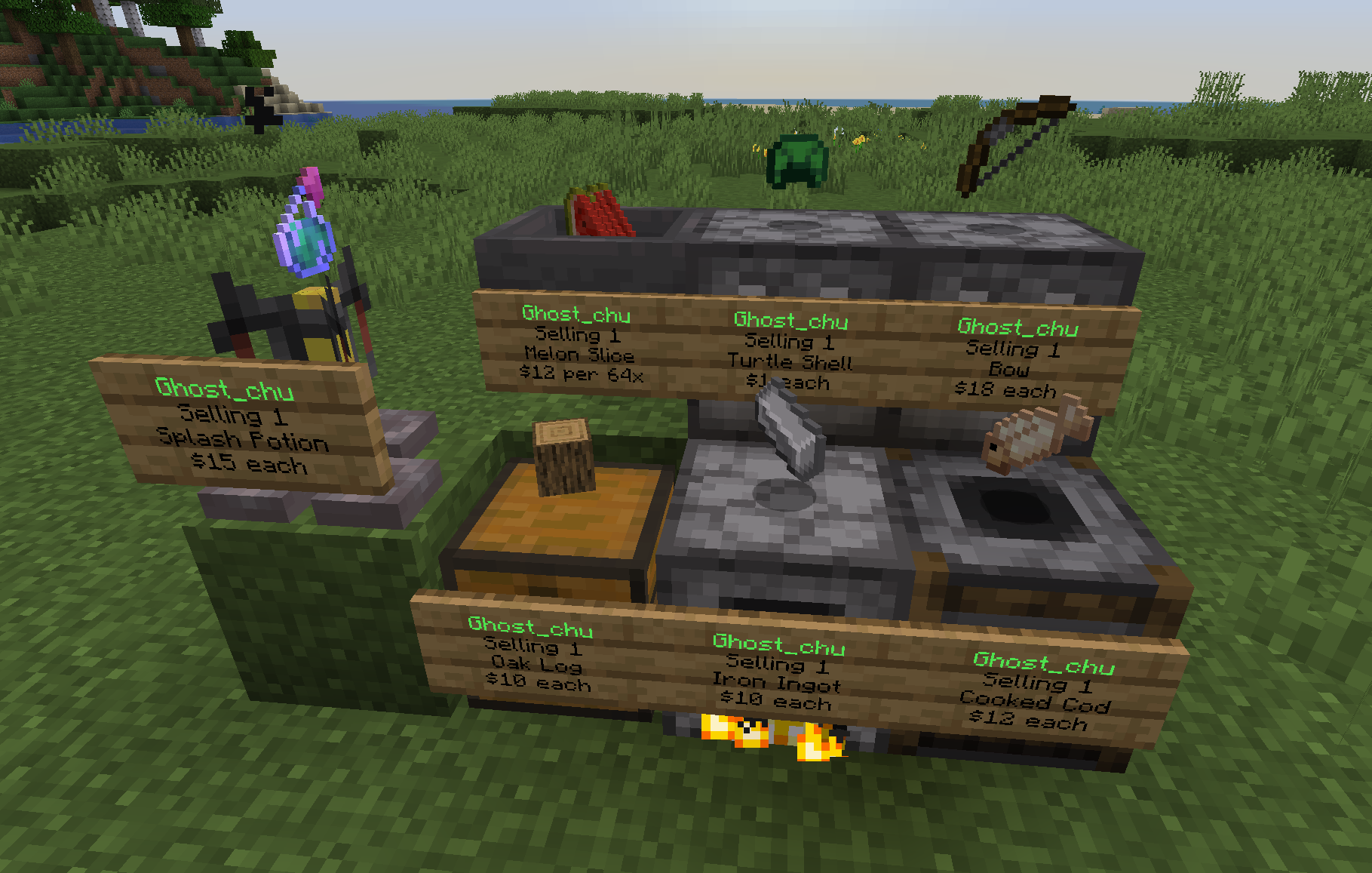 - Магазины в двойных сундуках для покупки и продажи