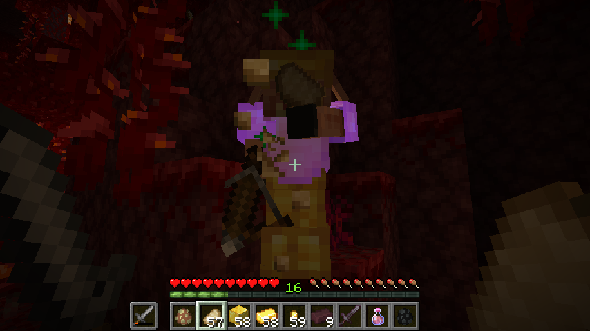 Fully armored piglin sharing its wealth